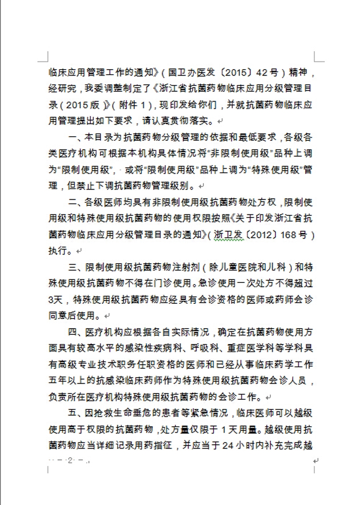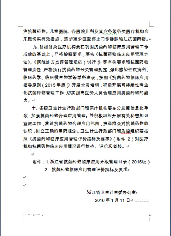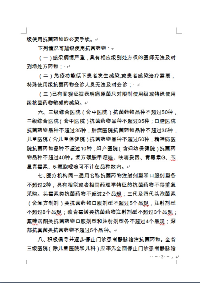 ??? 除兒童醫(yī)院和兒科外,全省三級醫(yī)院率先全面停止門診患者靜脈輸注抗菌藥物。