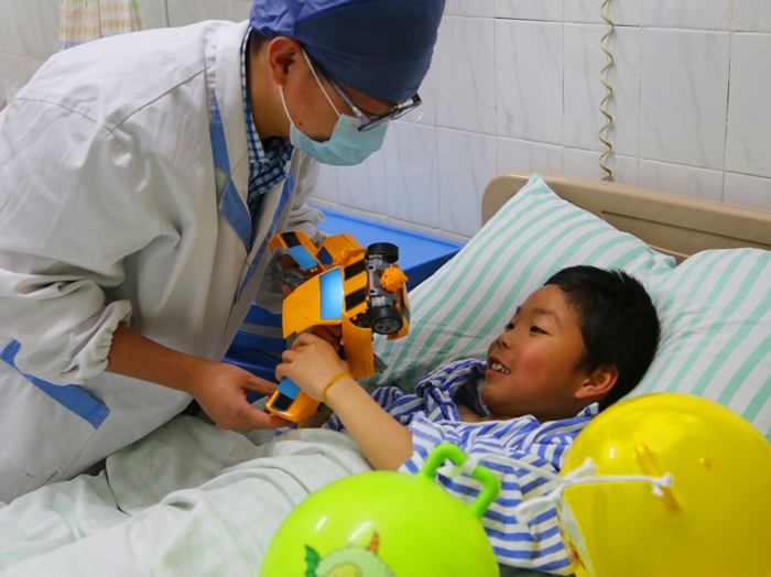 ??? 近日,浙江省衢州市人民醫(yī)院ICU病房里傳出陣陣笑聲。11歲的王東(化名)小朋友因從高處墜落入住ICU,經(jīng)過醫(yī)護(hù)人員搶救,生命體征趨于平穩(wěn)。為了讓他能夠盡快適應(yīng)陌生環(huán)境,不再對(duì)這些“全副武裝”的醫(yī)護(hù)人員心存恐懼,護(hù)士長(zhǎng)特地買來了他最喜歡的“鎧甲勇士”玩具公仔??吹阶约合矚g的玩具,王東終于開心地笑了。