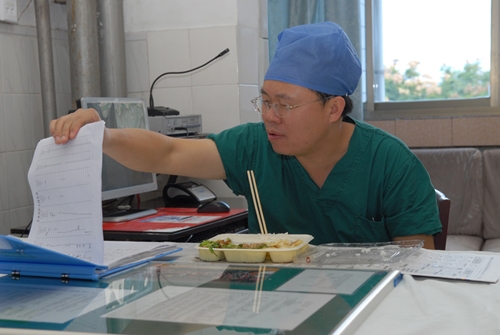 10分鐘的吃飯時(shí)間還不忘看看患者的病歷