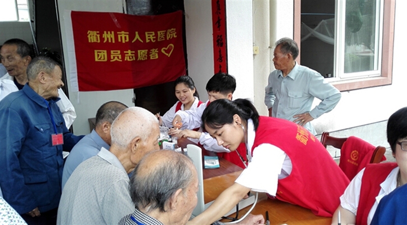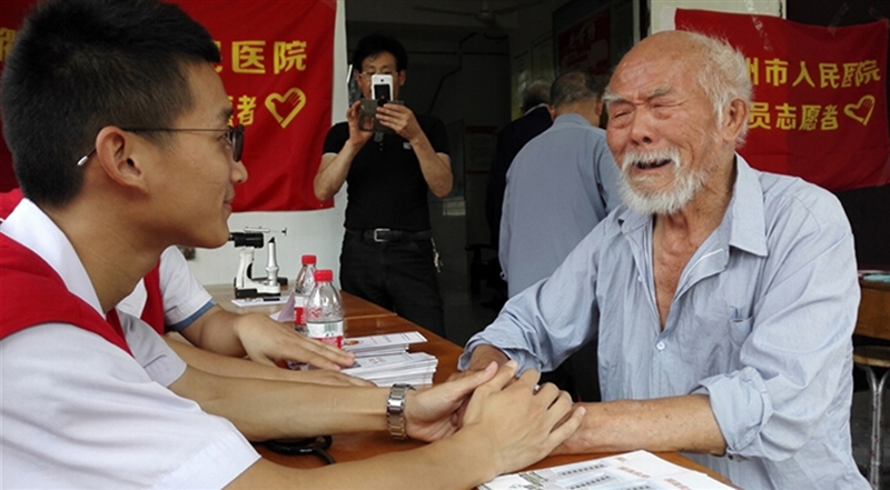 ??? 儀式結(jié)束后,我院志愿者一行10人來到航埠鎮(zhèn)敬老院,醫(yī)生護(hù)士立即忙碌開來,為50余位孤寡老人測血壓、測血糖、眼部檢查及疾病咨詢,講解健康知識。隨后,陪老人拉家常、傾聽老人的訴說,敬老院的各個角落都能看到志愿者忙碌的身影,幸福的笑容洋溢在每一位老人的臉上。