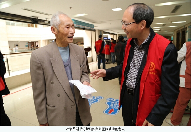 ??? 市衛(wèi)計委倡議每一位衛(wèi)計工作人員,在休息日來院做志愿者服務。在周六和周日,市衛(wèi)計委黨委副書記、副主任葉浩平,副主任周衛(wèi)華、呂美姿,黨委委員廖利軍等9名工作人員紛紛來我院開展志愿服務。主動引導并協(xié)助患者使用自助服務機、幫助患者就診和辦理住院、勸阻吸煙、協(xié)助維持就診秩序等。