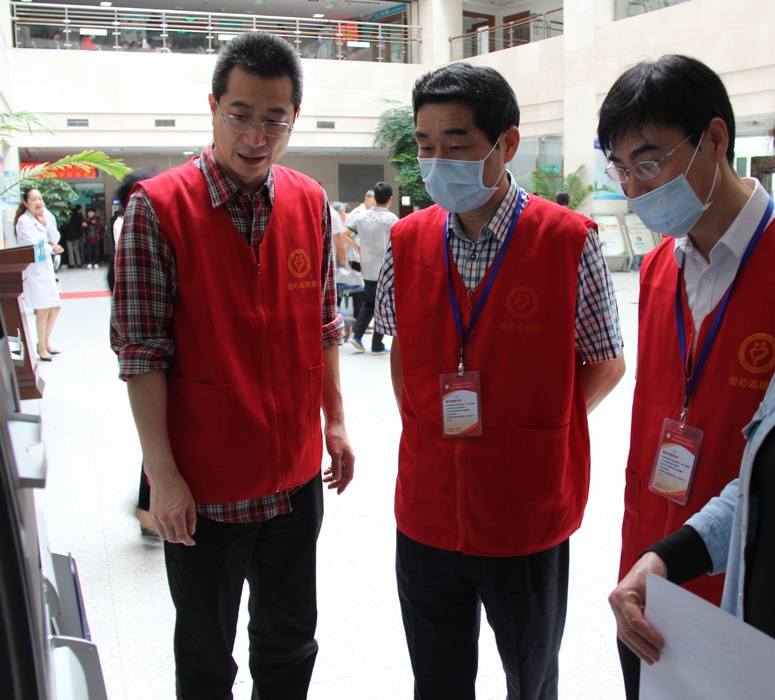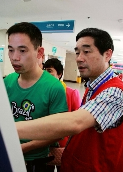 ??? “急診怎么走?”、“這里能打印檢驗(yàn)報(bào)告嗎?”……作為志愿者中的一員,市衛(wèi)生計(jì)生委主任陳根成一一耐心給予回答。這是相隔短短數(shù)月后,陳主任再次來院做志愿者。