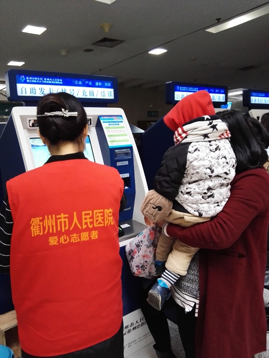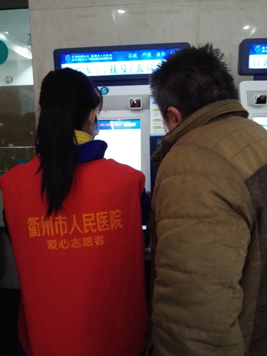 ??? 周素珍、潘正照 、譚惠娟、張月萍、徐素珍、胡曉芬、吳云霞、徐靜、毛敏娜、張露萍、鄭茜茜、徐友婷、白永風、鄭紅仙、姚素晴等15人在衢州市人民醫(yī)院做志愿者,主要來自社會志愿者和本院志愿者。 志愿者們主要為患者指路引導,陪伴行動不便、年老體弱患者就診,指導患者自助服務機使用方法,引導患者化驗前取號、打印化驗單,協(xié)助門診大廳工作人員疏導病人。