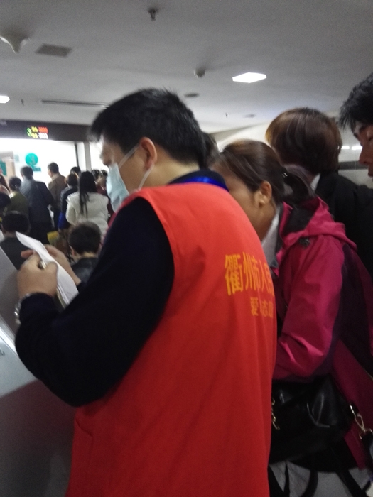 ??? 楊建琴、胡曉芬、嚴(yán)紅雁、王宇寧、豐學(xué)謙、葉麗園、范麗琴、王勝利、余秋明、張敏波、申桂娟、李麗民、施蘇青、鄭超越、翁亮亮、徐豪等16人在衢州市人民醫(yī)院做志愿者,主要來自社會(huì)志愿者和本院志愿者。 志愿者們主要為患者指路引導(dǎo),陪伴行動(dòng)不便、年老體弱患者就診,指導(dǎo)患者自助服務(wù)機(jī)使用方法,引導(dǎo)患者化驗(yàn)前取號(hào)、打印化驗(yàn)單,協(xié)助門診大廳工作人員疏導(dǎo)病人。