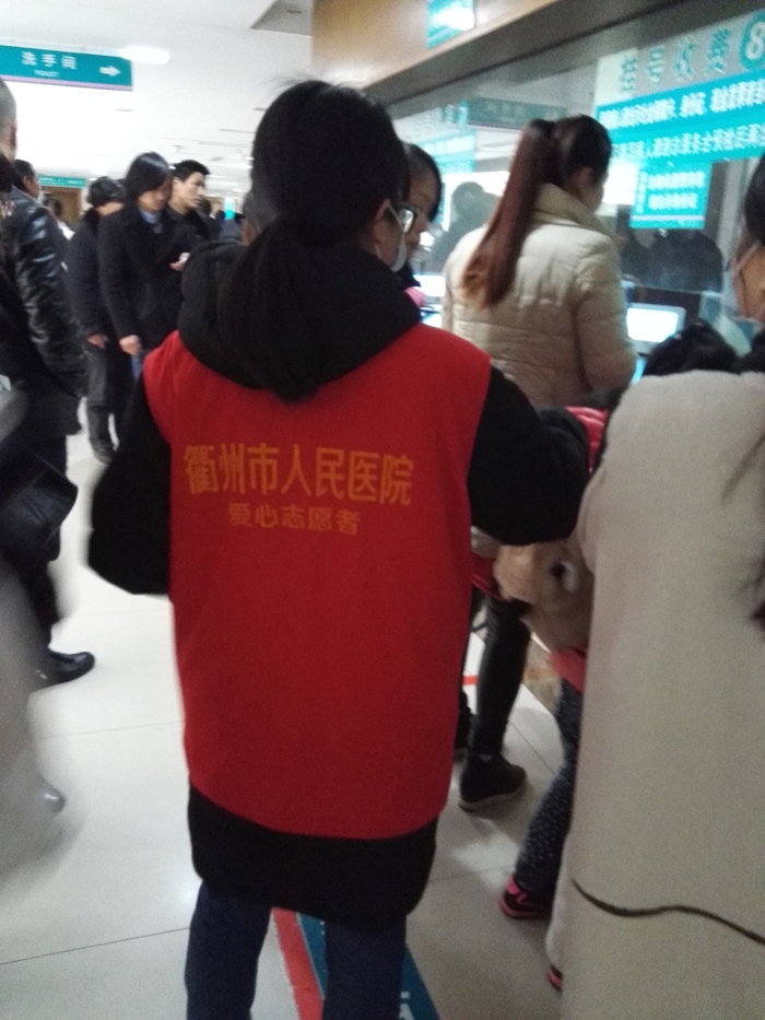 ??? 余慧晨、徐思惠、張莘陟、徐安琪、呂丹、陳玉瑩、徐怡、周孟穎、周慧娟、毛如意、鄭琦慧、葉佳蕓、王喬梅等13人在衢州市人民醫(yī)院做志愿者,主要來自寒假學(xué)生志愿者。 志愿者們主要為患者指路引導(dǎo),陪伴行動不便、年老體弱患者就診,指導(dǎo)患者自助服務(wù)機使用方法,引導(dǎo)患者化驗前取號、打印化驗單,協(xié)助門診大廳工作人員疏導(dǎo)病人。