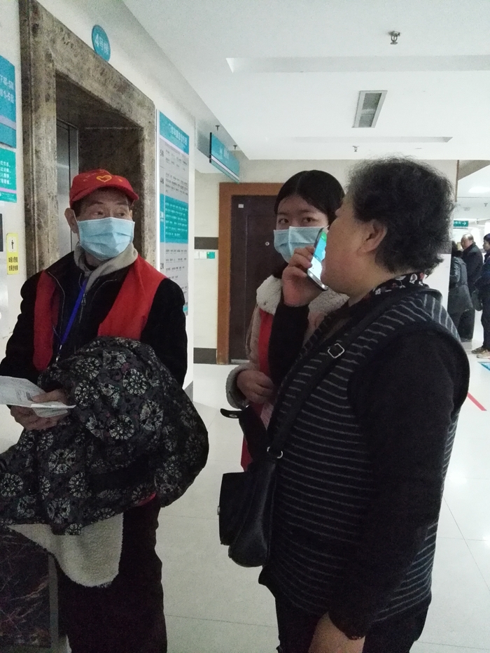 ??? 吳暢、王宜、祝文斌、羅霽萍、吳琛凱、劉翌純、陳侃琪、吳利婷、毛豐怡、毛佳雯、汪鄭妙、朱夢珂、鄭思綺、徐諾、王慧佳、廖周佳、周穎、葉時輯、劉雪珍、葉根倪等20人在衢州市人民醫(yī)院做志愿者,主要來自寒假學(xué)生志愿者, 志愿者們主要為患者指路引導(dǎo),陪伴行動不便、年老體弱患者就診,指導(dǎo)患者自助服務(wù)機使用方法,引導(dǎo)患者化驗前取號、打印化驗單,協(xié)助門診大廳工作人員疏導(dǎo)病人。