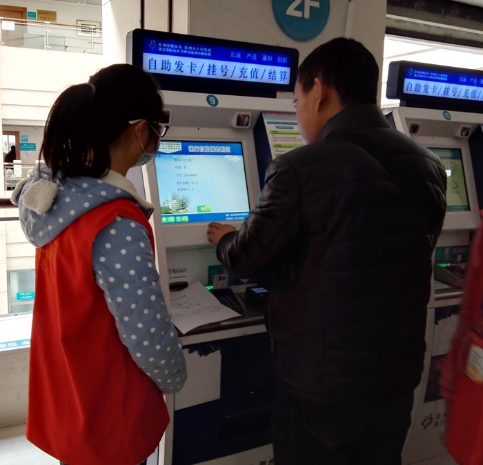 ??? 吳暢、王宜、祝文斌、羅霽萍、吳琛凱、劉翌純、陳侃琪、吳利婷、毛豐怡、毛佳雯、汪鄭妙、朱夢(mèng)珂、鄭思綺、徐諾、王慧佳、廖周佳、周穎等13人在衢州市人民醫(yī)院做志愿者,他們來(lái)自寒假學(xué)生志愿者。 志愿者們主要為患者指路引導(dǎo),陪伴行動(dòng)不便、年老體弱患者就診,指導(dǎo)患者自助服務(wù)機(jī)使用方法,引導(dǎo)患者化驗(yàn)前取號(hào)、打印化驗(yàn)單,協(xié)助門(mén)診大廳工作人員疏導(dǎo)病人。