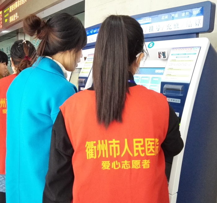 ??? 王建中、王宇寧、朱厚清、羅益芳、楊君梅、曾琳琳、羅育蘭、張俊晴等8人在衢州市人民醫(yī)院做志愿者,他們服務(wù)累計時間400余小時。志愿者們主要在門診大廳一樓至五樓接受患者咨詢、引導(dǎo)自助服務(wù)機(jī)使用方法、流動服務(wù),幫助身體虛弱及身心障礙者等提供引導(dǎo)、協(xié)助門診大廳工作人員疏導(dǎo)病人。