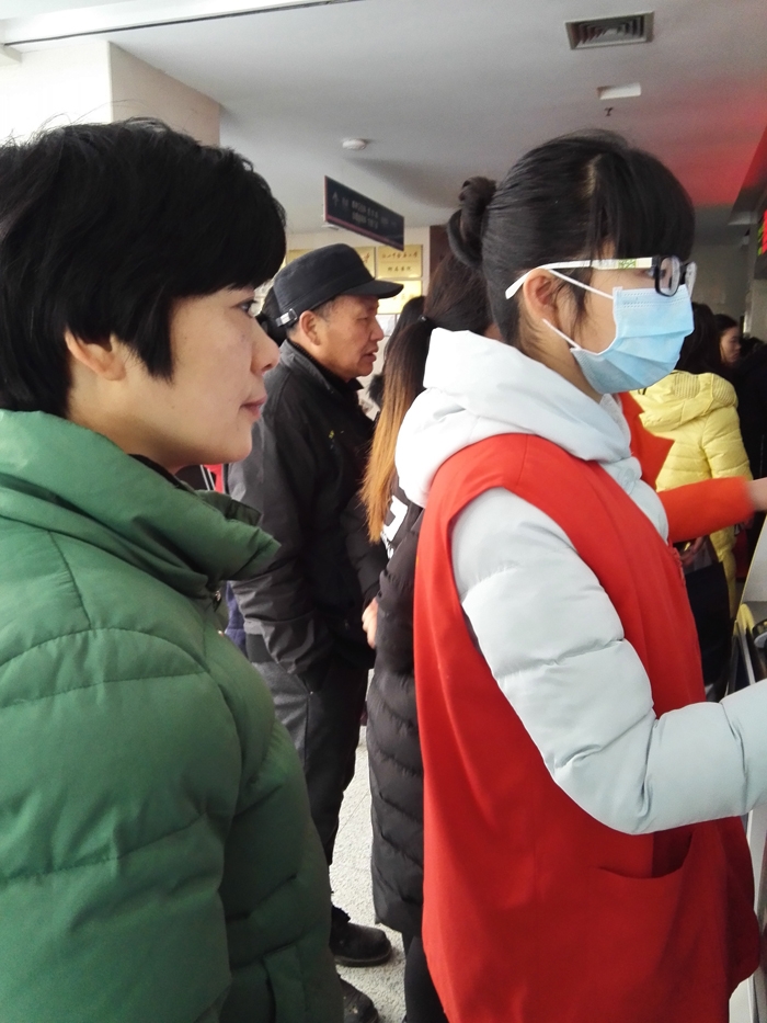 ??? 徐鑫洋、湯美娟、湯玉卿、陳夏雯、徐嘉妮、葉佳怡、周育存、汪潔瓊、李興江、余照坤、王宇寧等11人在衢州市人民醫(yī)院做志愿者,主要來自寒假學(xué)生志愿者。 志愿者們主要為患者指路引導(dǎo),陪伴行動不便、年老體弱患者就診,指導(dǎo)患者自助服務(wù)機使用方法,引導(dǎo)患者化驗前取號、打印化驗單,協(xié)助門診大廳工作人員疏導(dǎo)病人。