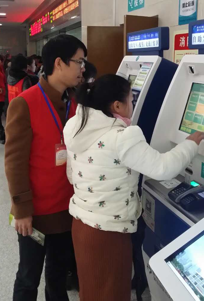 ??? 徐冰俊、章一超、朱早慶、胡淑蕾、汪霞燕、胡禮慶、張柳等7人在衢州市人民醫(yī)院做志愿者。志愿者們主要在門診大廳一樓至五樓接受患者咨詢、引導(dǎo)自助服務(wù)機(jī)使用方法、流動服務(wù)、幫助身體虛弱及身心障礙者等提供引導(dǎo)、協(xié)助門診大廳工作人員疏導(dǎo)病人。