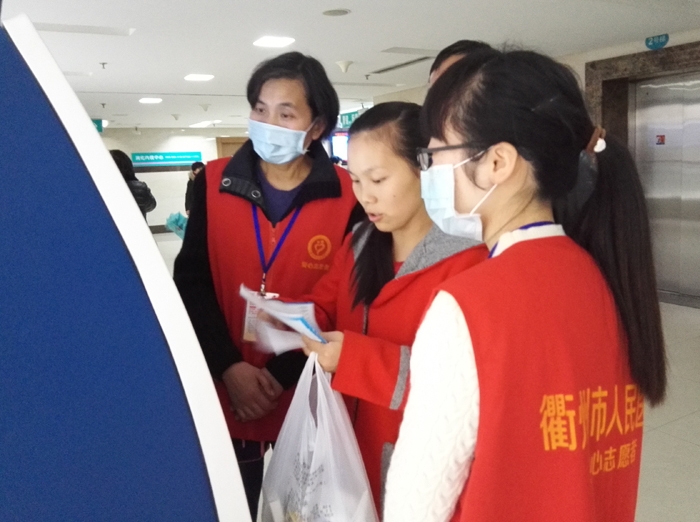 ??? 丁潔元、許小風、劉芳芳、譚惠娟、周素珍、汪超萍、章紅娟、王慧娟、翁文淵、胡曉芬、羅益芳、潘正照等12人在衢州市人民醫(yī)院做志愿者,他們累計服務時間600余小時。志愿者們主要在門診大廳一樓至五樓接受患者咨詢、引導自助服務機使用方法、流動服務,幫助身體虛弱及身心障礙者等提供引導、協(xié)助門診大廳工作人員疏導病人。