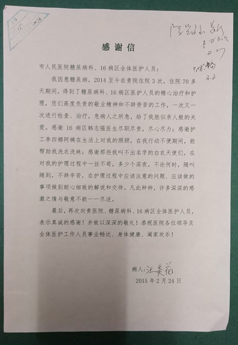 感謝信(致內(nèi)分泌科、呼吸內(nèi)科) 文章來(lái)源: 作者: 點(diǎn)擊數(shù):7159 更新時(shí)間:2015-02-24 上一篇: 感謝信 下一篇: 感謝信(致余俊華醫(yī)生)