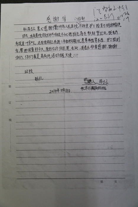 感謝信(致余俊華醫(yī)生)