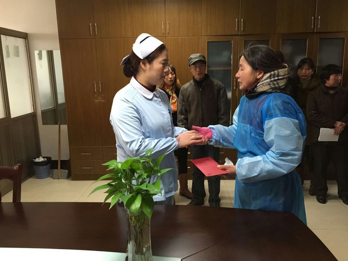 ??? 12月21日早晨,鄭迎夏護(hù)士長代表全科醫(yī)護(hù)人員將這份愛心轉(zhuǎn)交到張濤媽媽的手中,希望他和媽媽要有戰(zhàn)勝病魔的信心和力量,爭取早日康復(fù)。