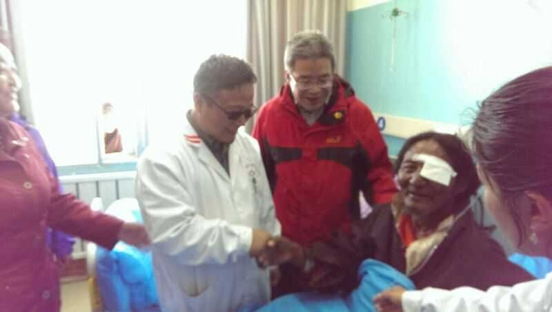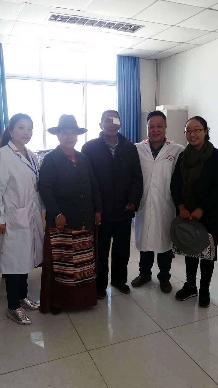 姜方正醫(yī)生(左二)看望剛剛完成手術(shù)的藏民