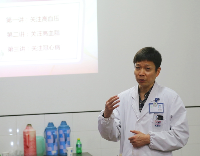 義診后,心血管內(nèi)科主任屠曉鳴作了健康知識講座,向群眾宣教健康的生活方式。