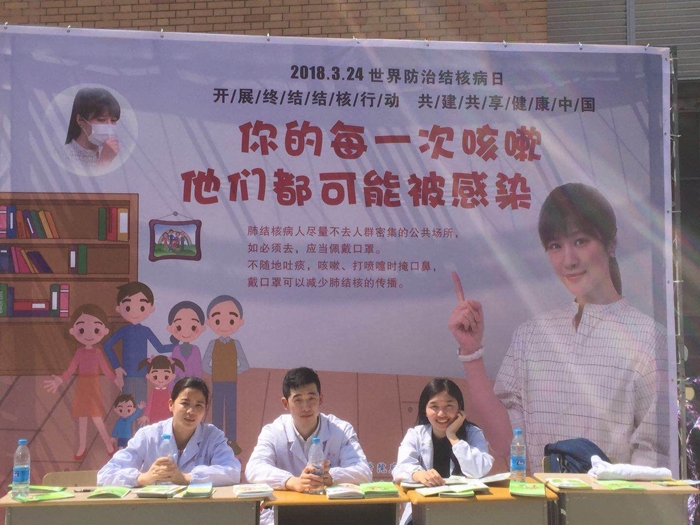 發(fā)放宣傳手冊(cè)、宣傳結(jié)核相關(guān)知識(shí)……在學(xué)校的支持下,活動(dòng)進(jìn)行得如火如荼。在場師生聽得很認(rèn)真,并及時(shí)提出自己的困惑,許多年輕人也一同參與到防治結(jié)核的隊(duì)伍當(dāng)中,向過往群眾宣傳結(jié)核知識(shí)。