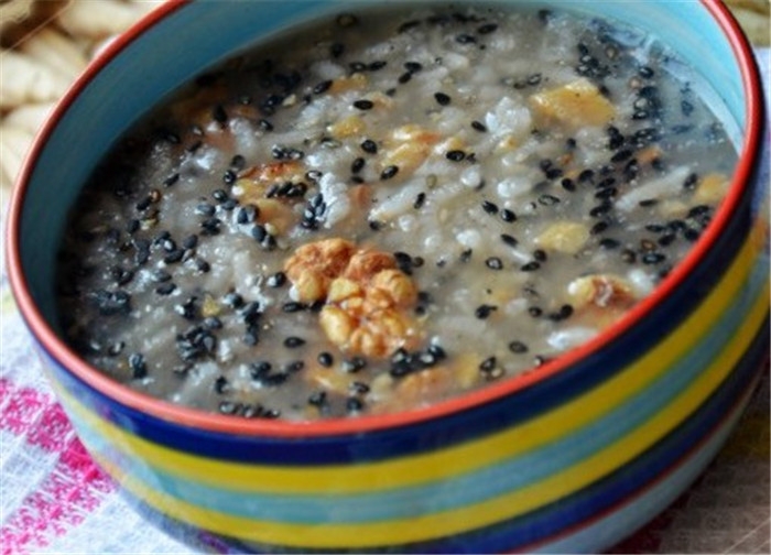 粳米100克、核桃仁75克、黑芝麻20克、冰糖適量。
