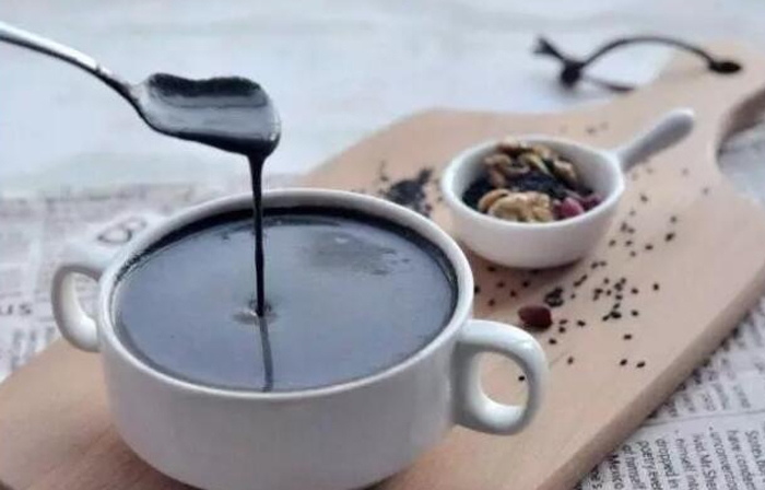 將花生、黑芝麻洗凈,放入豆?jié){機,加入適量水煮開,然后加入冰糖適量。