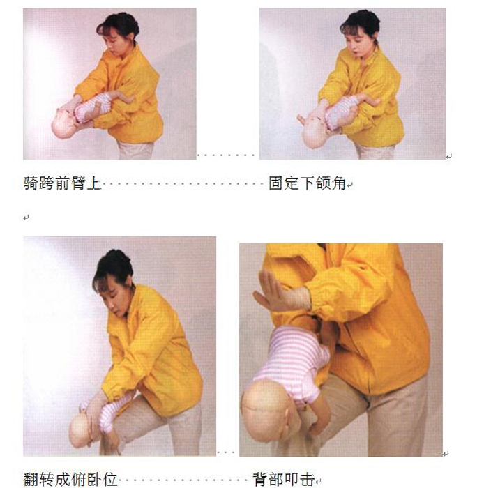 5、勿將嬰兒雙腳抓起倒吊從背部拍打,不僅無(wú)法排出異物,還可能造成頸椎受傷。
