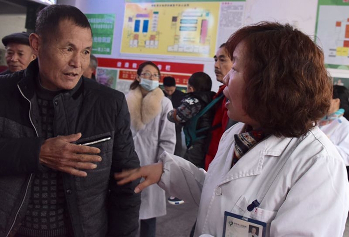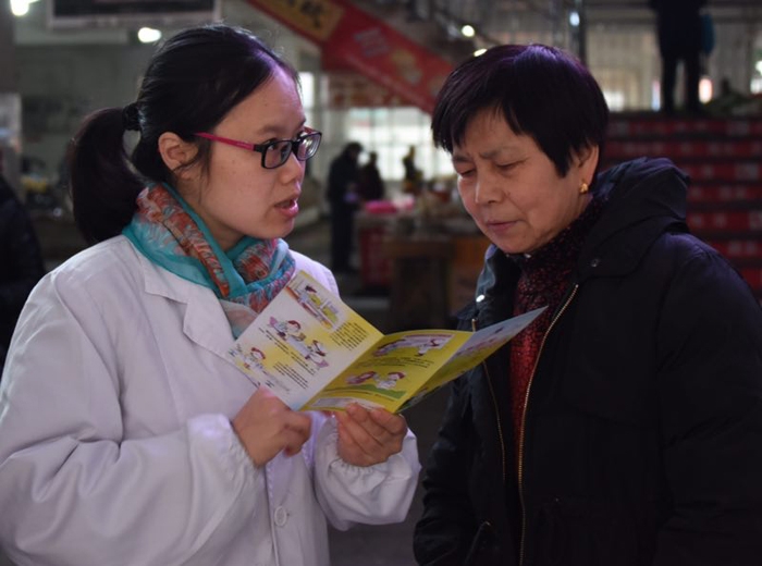 感染科護士長林麗紅在向市民發(fā)放結(jié)核病防治資料并耐心講解結(jié)核病防治知識