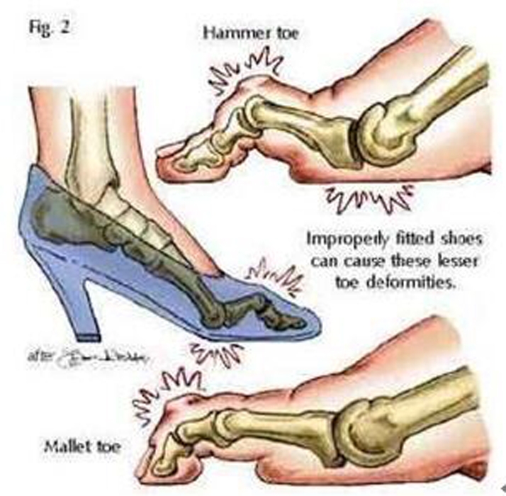 ??? 穿高跟鞋時(shí),容易出現(xiàn)爪行趾這個(gè)問(wèn)題,也就是在腳趾發(fā)力蹬地的時(shí)候,腳趾會(huì)蜷縮起來(lái),同時(shí)前腳掌過(guò)度地壓向地面,這個(gè)過(guò)程稱(chēng)為橫弓下陷,如果橫弓長(zhǎng)期承受這樣的壓力,橫弓就會(huì)塌陷。