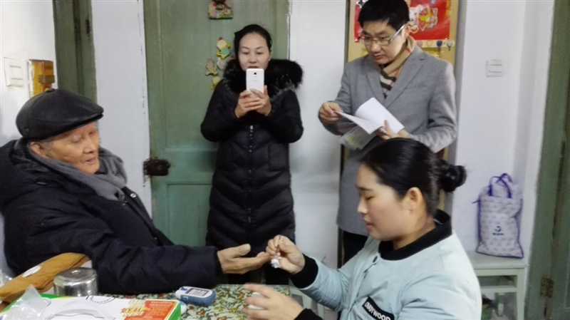 ??? 同樣是80多歲的老趙,患糖尿病十余年,是內分泌科的老病人。家屬最近反映,家里的血糖儀有點問題,檢測結果有誤差,老人家行動也不太方便。糖尿病??谱o士祝春燕為老趙監(jiān)測血糖并檢查了血糖儀。