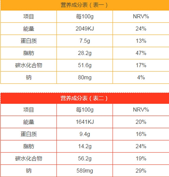市場上某兩種號(hào)稱無糖月餅的配方。