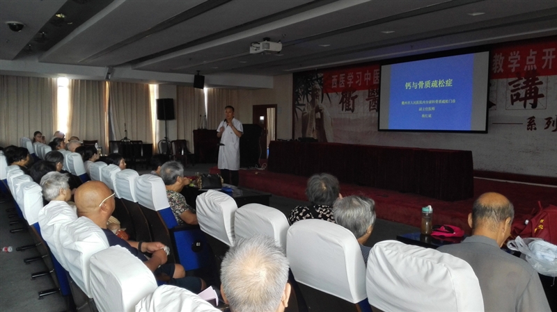 ??? 8月6日上午,內(nèi)分泌科健康教育大講堂在門診五樓學(xué)術(shù)報(bào)告廳舉行,本期主講專家是骨質(zhì)疏松門診的楊紅斌副主任醫(yī)師,他為大家提供了一場(chǎng)主題為“骨質(zhì)疏松癥的預(yù)防與治療”的健康大餐。