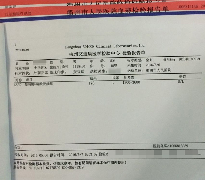 由于這種病有遺傳性,如果父母一方有“蠶豆病”,建議給寶寶,特別是男寶寶檢驗(yàn)一下葡萄糖-6-磷酸脫氫酶(G6PD)或做相關(guān)基因的檢測(cè)。