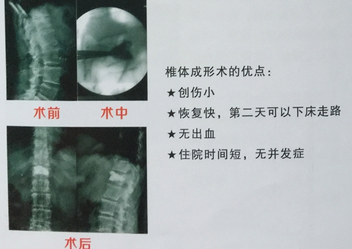 ?? ?椎體成形術(shù):是一種局麻下完成的脊柱外科微創(chuàng)手術(shù),近年來(lái)它的廣泛應(yīng)用,避免了患者進(jìn)行較大的脊柱外科手術(shù),減輕了局部的疼痛,增加了脊柱的穩(wěn)定性,對(duì)患有多種內(nèi)科疾病的老年患者可早期下床活動(dòng),有利于康復(fù)訓(xùn)練,減少了因長(zhǎng)期臥床帶來(lái)的并發(fā)癥。