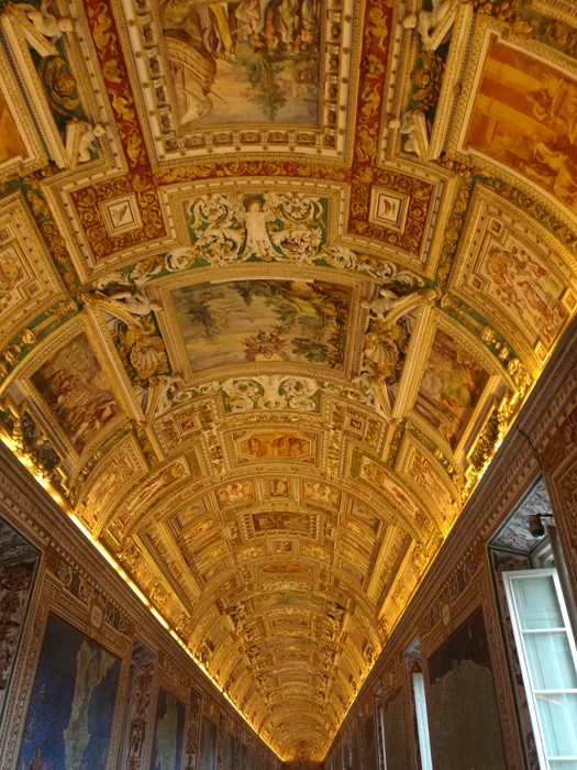 ??? 周六早晨我們從錫耶納驅(qū)車前往羅馬。第一站來到梵蒂岡博物館。博物館本來是羅馬教皇的宮廷,后來被改造成為了國家博物館。它擁有12個陳列館和5條藝術(shù)長廊,匯集了希臘、羅馬的古代遺物以及文藝復(fù)興時期的藝術(shù)精華,大都是無價之寶,如米開朗琪羅創(chuàng)作的《創(chuàng)世紀(jì)》和《最后的審判》都藏于此。西斯廷禮拜堂頂棚的《創(chuàng)世紀(jì)》面積300平方米,由9幅中心畫面組成,畫出上帝創(chuàng)造世界的過程?!赌┤盏膶徟小穭t位于正面壁上,充滿絕望陰沉的氣息,該畫描繪的是世界末日來臨時,基督把萬民召集在自己面前,分出善惡的情景。歌德曾評論說,“沒有到過西斯廷禮拜堂的人,無法了解一個人所能做的事”。 署名室胡天花板壁畫“雅典學(xué)園”也馳譽(yù)于世,是拉斐爾在25歲左右的作品,位居畫面中心的柏拉圖和亞里土多德,一個以指頭指著上天,另一個則伸出右指指著他前面的世界,以此表示他們不同的哲學(xué)觀點:柏拉圖的唯心主義和亞里士多德的唯物主義。