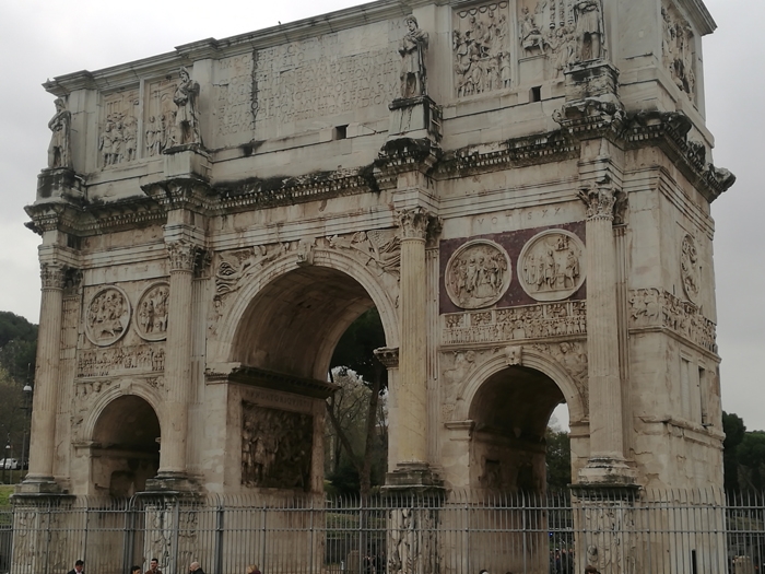 ??? 第三站:古羅馬露天競技場,也稱斗獸場,建于公元1世紀(jì)。這座橢圓形的建筑物占地約2萬平方米,周長527米,是古羅馬帝國的象征。這片露天競技場遺址的北面,是記載塞維魯皇帝遠(yuǎn)征帕提亞功績的凱旋門,南面是記載提圖斯皇帝東征耶路撒冷戰(zhàn)績的提圖斯凱旋門,在提圖斯凱旋門南面不遠(yuǎn)處,還有一座為紀(jì)念君士坦丁大帝戰(zhàn)勝馬克森提而建立的羅馬最大的凱旋門。帝國大道東邊的圖拉真廣場,是古羅馬城的商業(yè)中心。市場旁矗立著一根高40米的凱旋柱,柱上螺旋形的浮雕,描繪了圖拉真皇帝遠(yuǎn)征多瑙河流域的故事。
