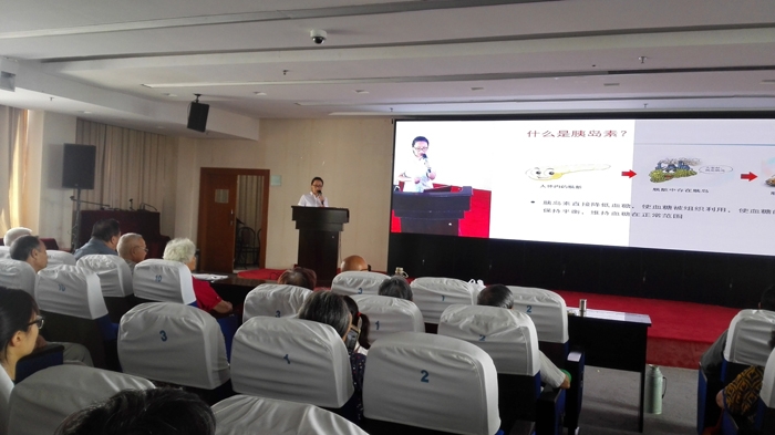 ??? 6月3日上午,我院內(nèi)分泌科在門診五樓學術報告廳舉行了一場糖尿病知識講座,邀請了精神衛(wèi)生科的王宇林醫(yī)師和內(nèi)分泌科的萬金星醫(yī)師,為大家?guī)砹恕疤悄虿〔∪嗽撊绾螒獙σ钟舭Y”和“正確認識糖尿病”的講座,40余名患者蒞臨現(xiàn)場聆聽了這場實用的講座。