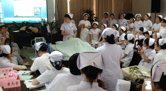 ??? 當(dāng)我和同事們參與這次與眾不同的課堂心肺復(fù)蘇示教,看到包括心肺復(fù)蘇、呼吸皮囊應(yīng)用、麻醉插管的配合、靜脈通路的開放等的這樣一個(gè)貼合實(shí)際、詳細(xì)的院內(nèi)急救流程時(shí),先前對(duì)于現(xiàn)實(shí)搶救的種種疑慮終于有了答案。尤其是我擔(dān)任模擬急救護(hù)士角色,參與了從發(fā)現(xiàn)病情到搶救成功的整個(gè)過程,深切地體會(huì)到在臨床搶救時(shí)團(tuán)隊(duì)力量的重要,有條不紊地配合是各項(xiàng)操作得以順利進(jìn)行的關(guān)鍵。