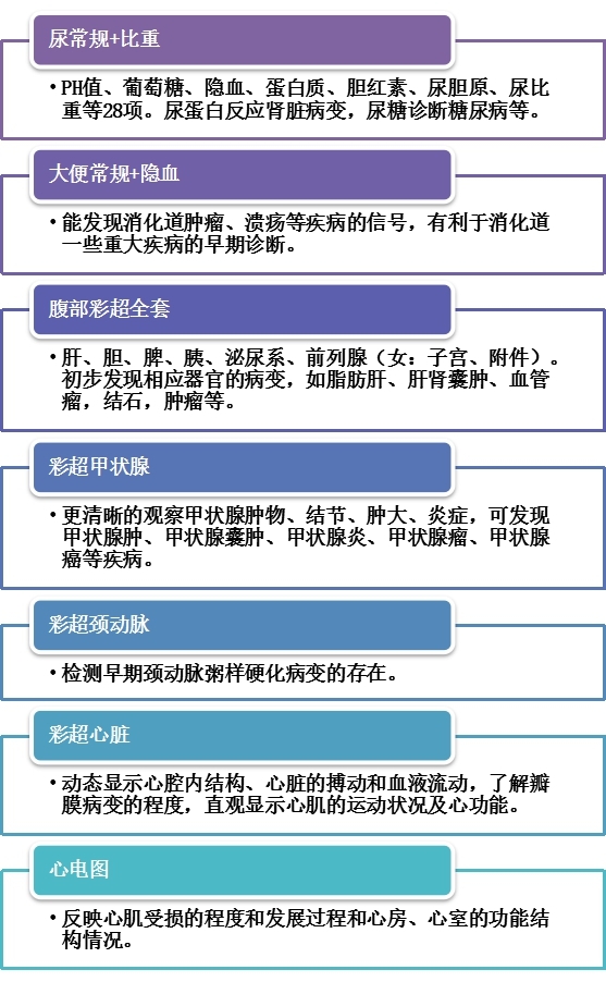 體檢項(xiàng)目意義 文章來源:健康管理中心 作者: 點(diǎn)擊數(shù):19478 更新時(shí)間:2019-11-14 女性另加 上一篇: 體檢辦理流程 下一篇: 2019年體檢套餐 (女)