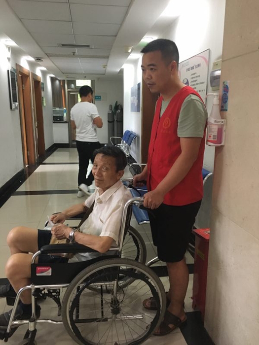 ??? 8月25日上午,在我院門(mén)診綜合服務(wù)中心,一位老奶奶想要租借輪椅,志愿者小徐立即跑上前熱心地說(shuō):“奶奶,我來(lái)幫你吧!”老奶奶開(kāi)心地對(duì)小徐說(shuō):“謝謝你!我家老頭84歲了,孩子們都不在身邊,每次老頭生病我都不知道怎么辦好?,F(xiàn)在醫(yī)院里有你們這些志愿者主動(dòng)幫忙,真的很暖心!”小徐一邊安撫老人,一邊推著輪椅送老大爺?shù)较瘍?nèi)科就診,做檢查。小徐全程陪在老大爺身邊,直到把他送到急診科,安頓在病床上,才回到門(mén)診。