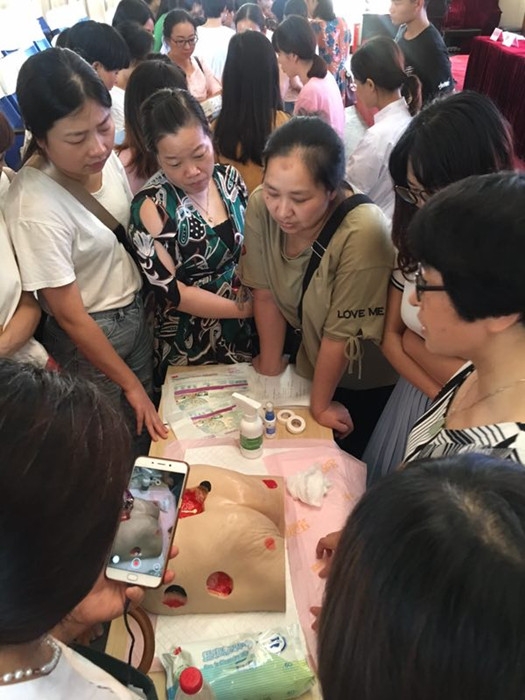 ??? 同時,會議以“工作坊”的形式讓參會者進行零距離交流與探討,通過仿真模型演示,我院傷口、造口??谱o士手把手地指導失禁性皮炎的處理, 學員們紛紛表示受益匪淺。