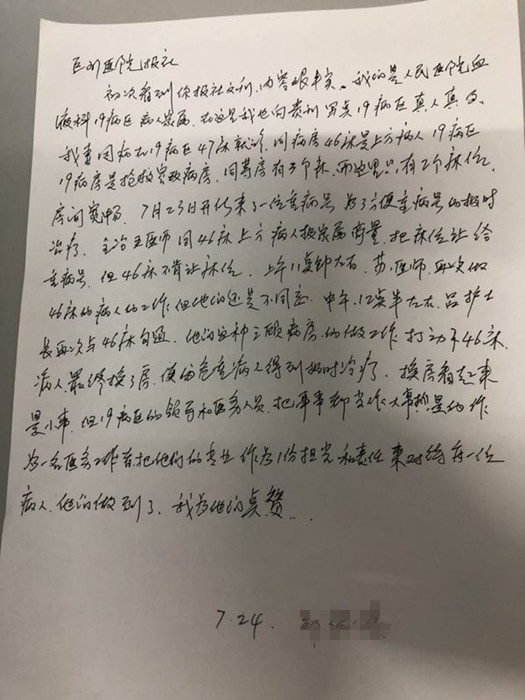 ??? 這一幕被鄭大伯看在眼里也記在心里,7月24日,鄭大伯等在護士長呂紅嬌辦公室門口送來這封點贊信。