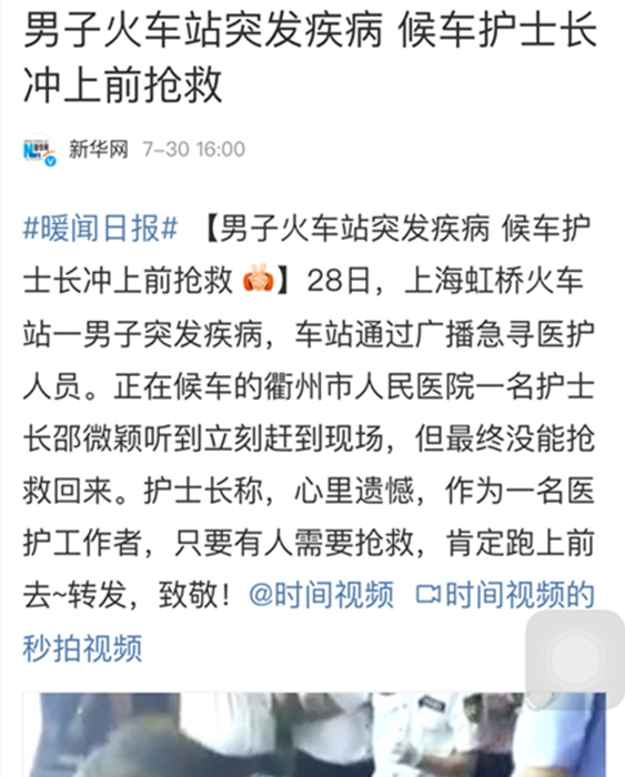 護(hù)士長(zhǎng)車(chē)站救人獲千萬(wàn)網(wǎng)友關(guān)注