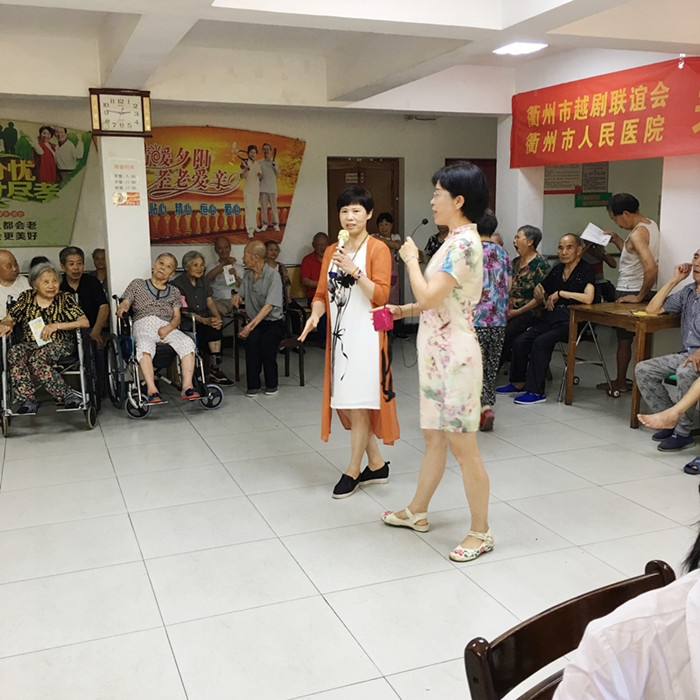 ??? “老吾老以及人之老,幼吾幼以及人之幼。”尊老敬老是中華民族的傳統(tǒng)美德,7月15日下午,我院感染科醫(yī)護(hù)護(hù)士及越劇俱樂部會(huì)員二十余人冒著酷暑來(lái)到祥元康福養(yǎng)老院,為老人提供健康義診,送上豐富多彩的表演。