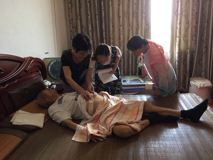 ????在腹透腎友家中,醫(yī)護人員看到患者經過治療能回歸到日常的生活中,感到十分欣慰,同時,給予腹透腎友專業(yè)的指導,如:評估腹透患者的透析環(huán)境、指導紫外線燈的安裝使用方法;了解患者換液操作是否規(guī)范,透析日記本是否及時記錄;檢查每位患者的出口處皮膚及下肢有無水腫等情況,強調規(guī)范換藥的重要性;詢問患者的飲食、血壓、尿量、體重及服藥情況;整理患者的家庭備用藥品,查看藥品有效期,詢問服藥后有無不良反應,并告知在服藥期間的注意事項等。同時,針對患者的不同情況,醫(yī)護人員進行了個性化指導。