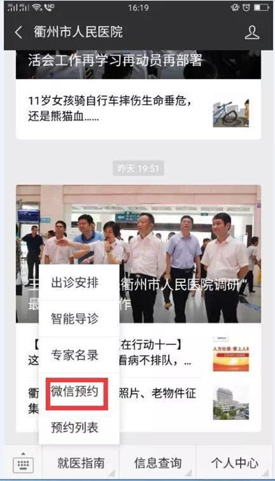 ??? 關(guān)注醫(yī)院官方微信號(hào),點(diǎn)擊就醫(yī)指南,選擇微信預(yù)約,輕輕松松幾個(gè)步驟,周先生就成功預(yù)約了口腔科。