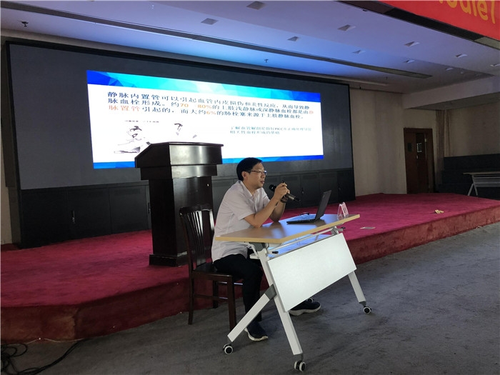 ??? 我院血管外科陸煒主任授課的"血管解剖及導(dǎo)管相關(guān)性的血栓",深入淺出的講解了上肢血管及PICC解剖位置,使學(xué)員對(duì)血管解剖有了一定的了解,掌握靜脈血栓的預(yù)防及處理措施。