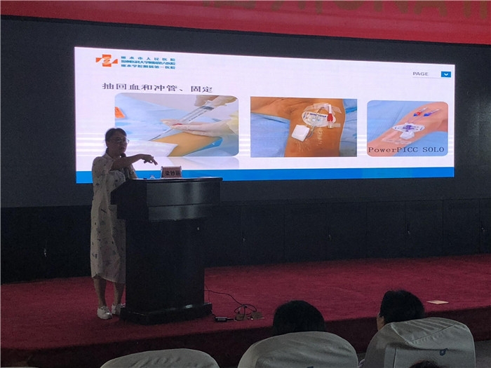 ??? 麗水人民醫(yī)院靜療小組組長(zhǎng)梁妙麗老師授課"PICC標(biāo)準(zhǔn)化置管"系統(tǒng)的講解了PICC置管標(biāo)準(zhǔn)操作,并將自身多年的臨床實(shí)踐及豐富的置管經(jīng)驗(yàn)與全省護(hù)理同仁分享。