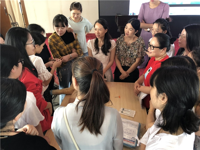 ??? 授課結(jié)束后,麗水中心醫(yī)院PICC??谱o(hù)士劉澤梅和我院PICC??谱o(hù)士葉曉慧以工作坊的形式,分組進(jìn)行規(guī)范置管與維護(hù)操作流程示范,為學(xué)員逐一進(jìn)行了操作考核。