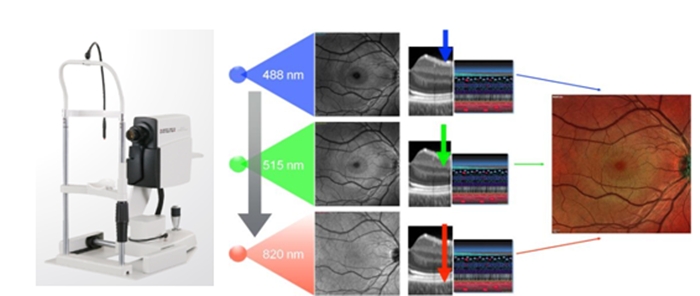 ??? 德國海德堡炫彩(Multicolor)激光眼底成像技術(shù)是一種全新的眼底影像模式,它采用三束不同波長的激光同時掃描眼底,由于各波長激光的組織穿透力不同,可以分別針對不同層次的眼底組織進行清晰觀察。