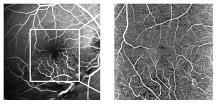 ??? OCT血管成像(OCTA)是一種無創(chuàng)、快速、分層顯示眼底視網(wǎng)膜及脈絡(luò)膜血管的嶄新科技,是目前最前沿的技術(shù)之一。主要應(yīng)用于眼科各種疾病檢查,尤其眼底病的診斷,如黃斑變性、糖尿病性視網(wǎng)膜病變、視網(wǎng)膜靜脈阻塞、青光眼、高度近視等等疾病。相比傳統(tǒng)的眼底造影檢查有四大優(yōu)勢。