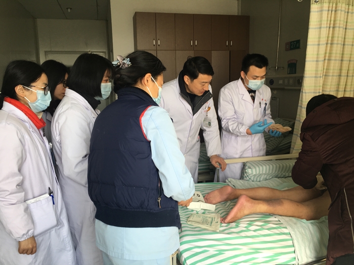 ??? 我院2013年成立造口傷口門診以來,每年門診量逐漸遞增,近兩年每年門診量均達(dá)到2千人次以上,負(fù)責(zé)處理各種急慢性傷口的創(chuàng)面治療、疑難造口并發(fā)癥的處理、失禁性患者的規(guī)范治療,其中1個(gè)月以上未愈合的慢性傷口采用功能性敷料的濕性愈合換藥方法、簡易負(fù)壓技術(shù)、糖尿病足小切口對(duì)流等,大幅度減少了抗生素的應(yīng)用,顯著加快了感染腔隙的閉合和感染創(chuàng)面的愈合。疑難傷口臨床多學(xué)科綜合治療團(tuán)隊(duì)(MDT)由我院副院長王李華和內(nèi)分泌科護(hù)士長陳育群牽頭,團(tuán)隊(duì)成員由血管外科、骨科、普外科、內(nèi)分泌科專家、國際造口治療師、傷口治療師、營養(yǎng)師等組成。成立后,將通過多學(xué)科交叉融合,為疑難慢性傷口患者制定個(gè)性化規(guī)范化的治療方案,提高患者治療的依從性,明顯縮短傷口愈合時(shí)間和減少換藥費(fèi)用,增加患者滿意度。