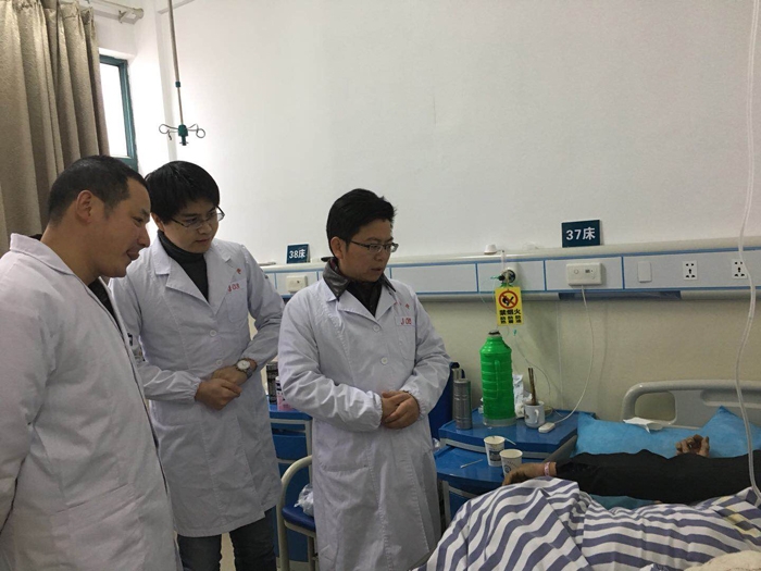 ??? 衛(wèi)生院同仁的帶領(lǐng)下,一行人對衛(wèi)生院肝膽疾病的住院患者進(jìn)行了疾病查房,認(rèn)真地詢問病史,為患者進(jìn)行了詳細(xì)的體格檢查,并向他們講解了疾病的相關(guān)知識、診療方案,還對患者進(jìn)行了飲食指導(dǎo)。